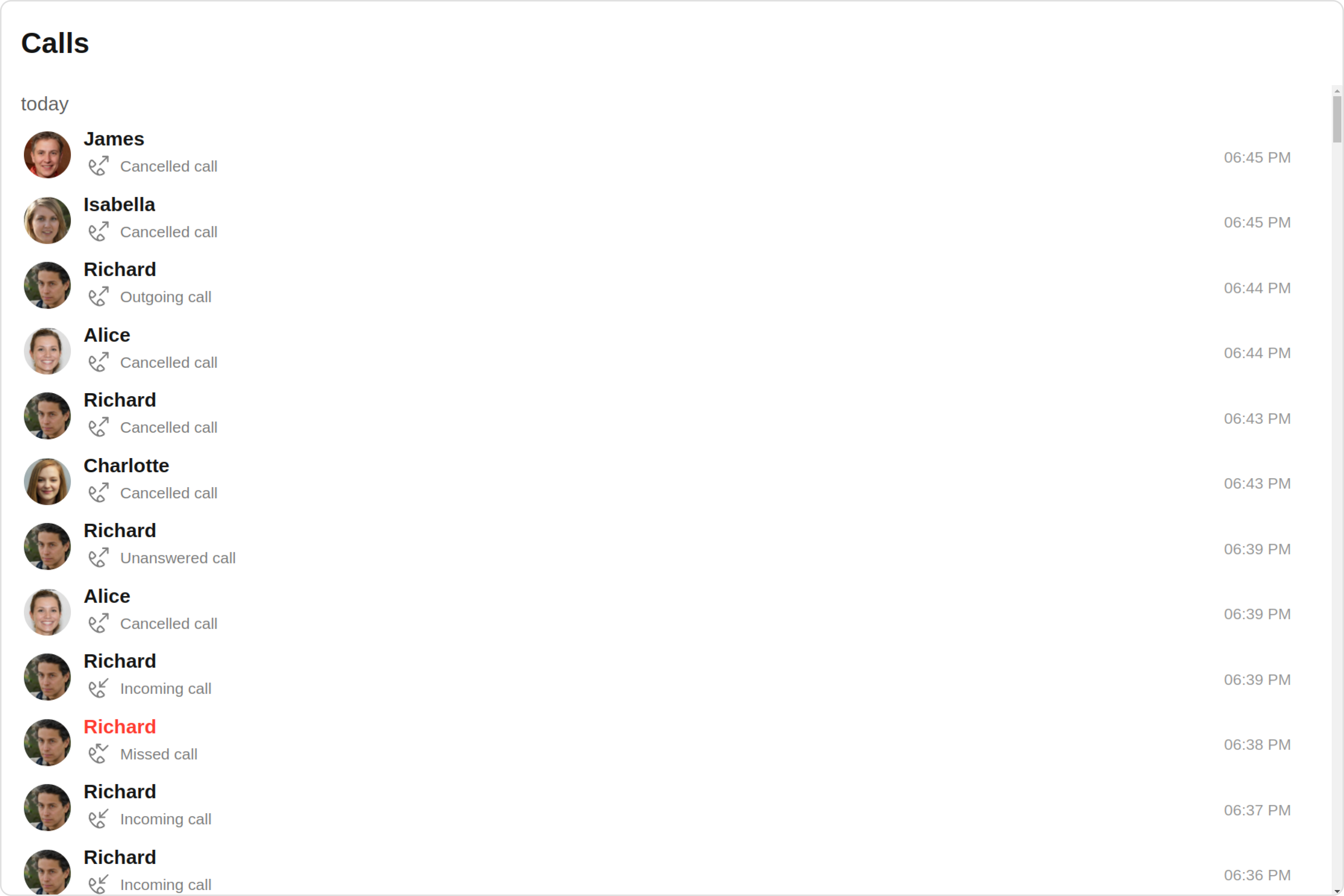 CometChatCallLogs is a Component that shows the list of Call Log available . By default, names are shown for all listed users, along with their avatar if available.